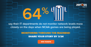 Today, like 70 million other Americans, we’ll fill out our brackets in hopes of winning it all. Later in the week, on Thursday and Friday, many of us will sneak out of a meeting to log on to watch the games or stream them from our mobile phones. While I may have been known to do this when Kansas is playing and would never judge anyone who wants to cheer on their team, did you know that $1.3 billion is lost each workday in productivity while employees are watching games? Just imagine the extra stress on your company’s IT infrastructure during March Madness. Fifty-three percent of companies report experiencing network slowdown or bottleneck issues during previous tournaments.